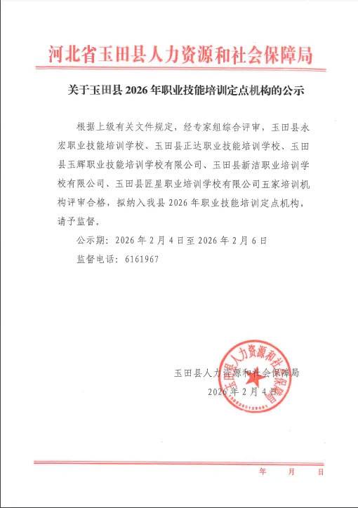 玉田县人力资源和社会保障局关于玉田县2026